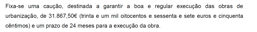 Uma caução, para uma obra de uma via pública para ser feita por um particular, com declaração de comparticipação da junta e depois de esclarecido que havia acordo com proprietários confrontantes para a dita obra!